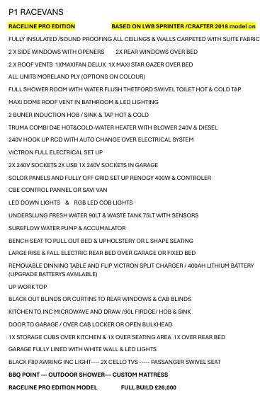 We also have our bespoke design service. To create the van of your dreams please contact us and we are more than happy to help you with your conversion.